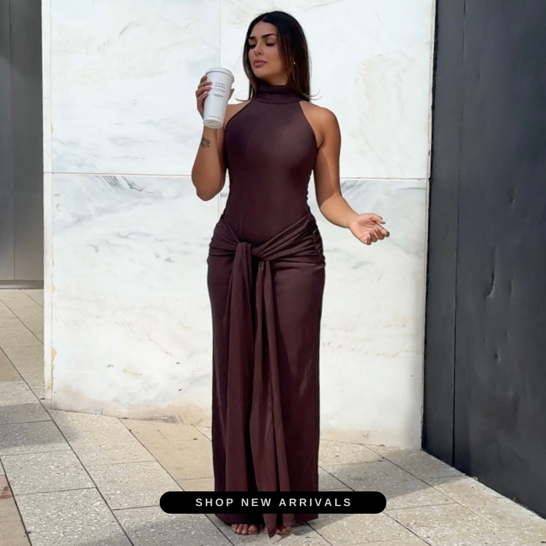 FLORENCIA RUCHED MAXI DRESS (ESPRESSO)