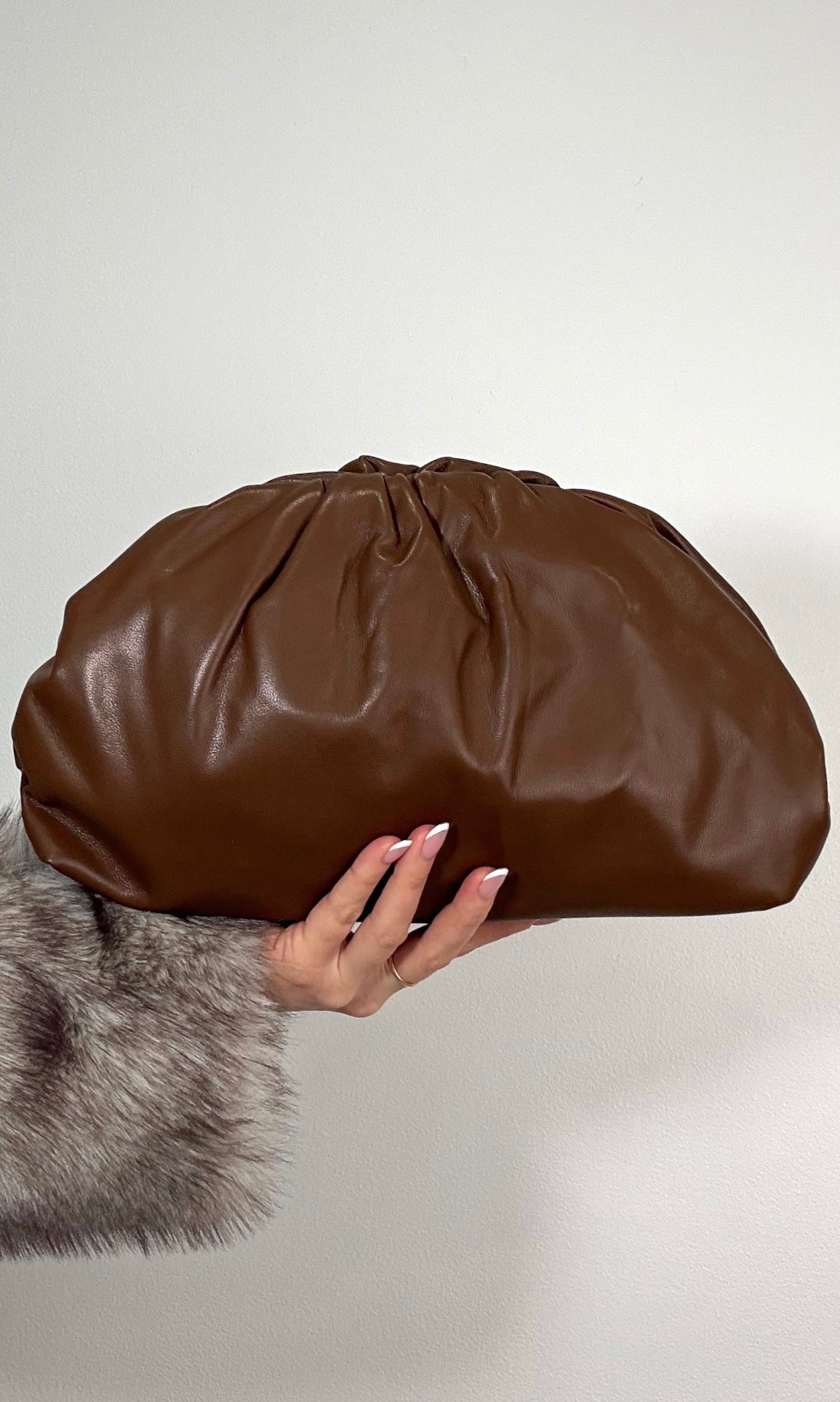CLOUD LEATHER RUCHED CLUTCH (CHOCOLATE)