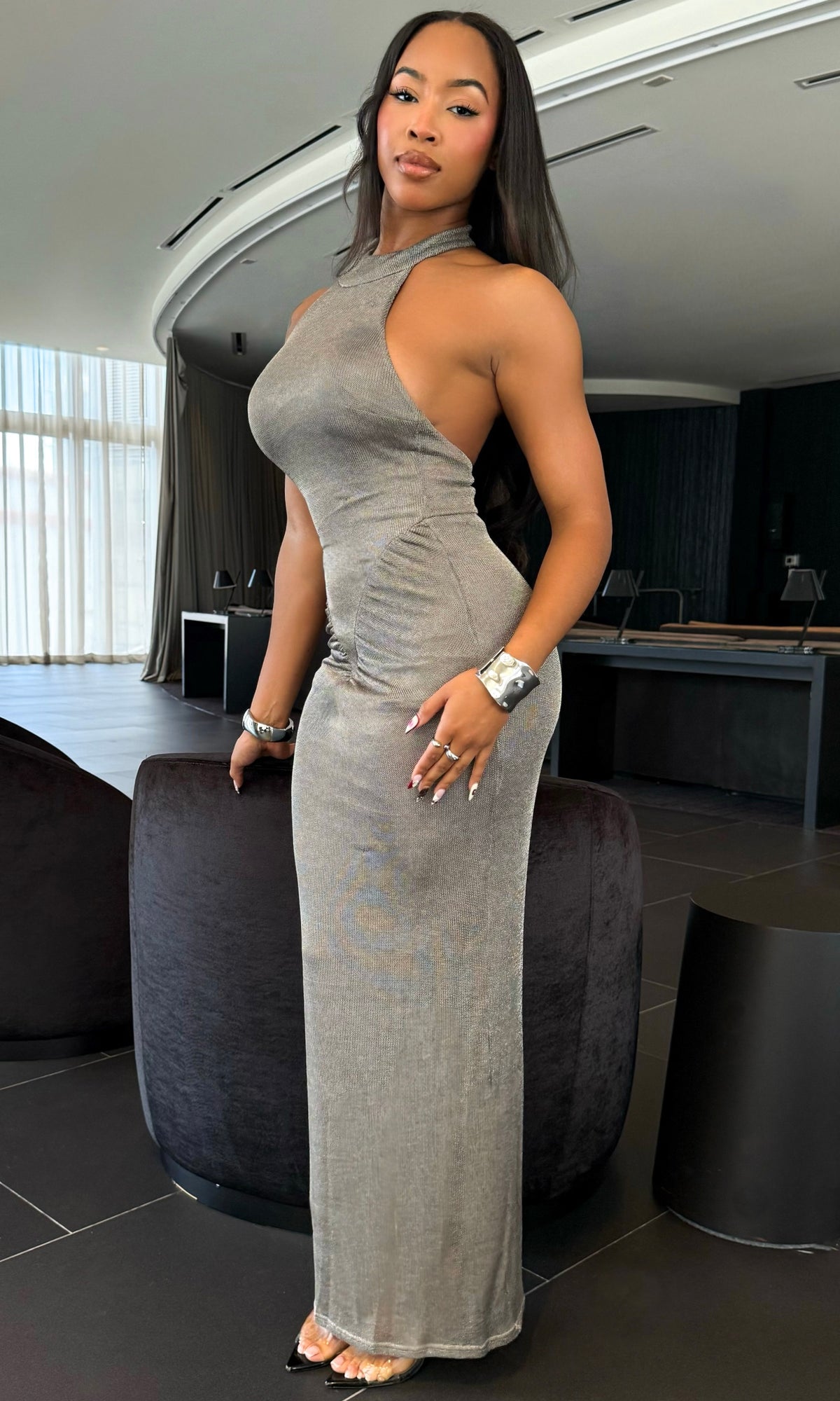 FLORENCIA RUCHED MAXI DRESS (ESPRESSO)